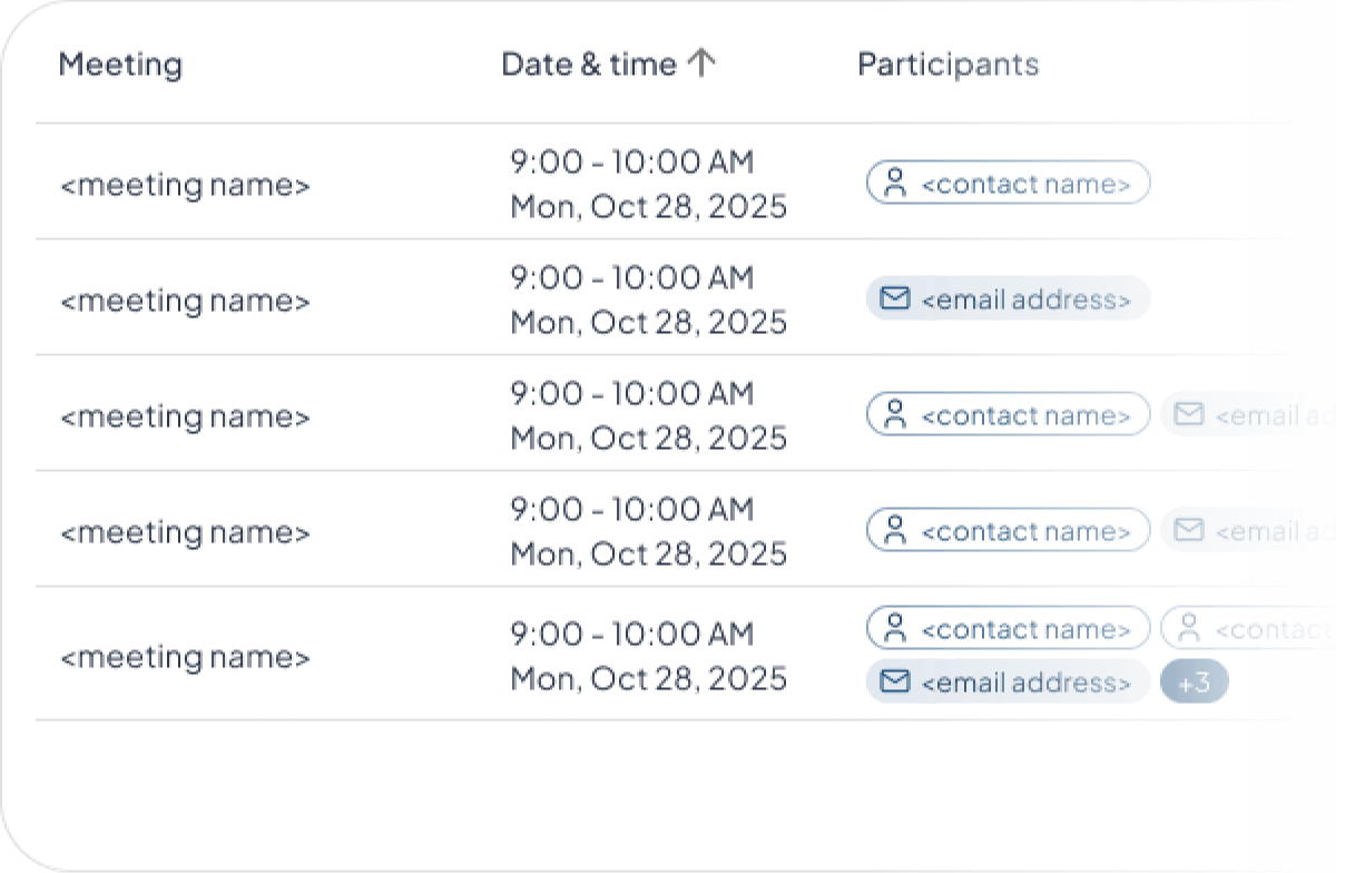Your branded, AI scheduler that turns every meeting into next steps, automatically. Free to use, fast to adopt.